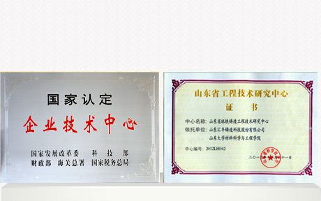 荣获国家专利30余项,其中发明专利近20项。2012年被山东省科学技术厅认定为“山东省球墨铸铁工程技术中心”2013年公司被国家发改委、科技部等五部门共同认定为“国家级企业技术中心”。