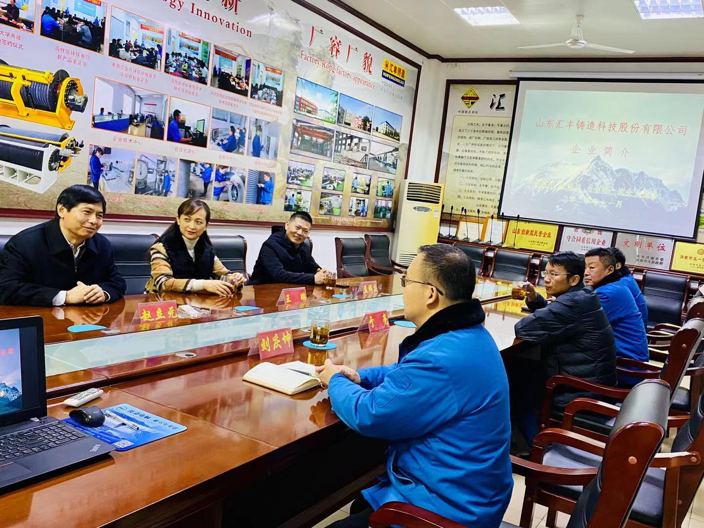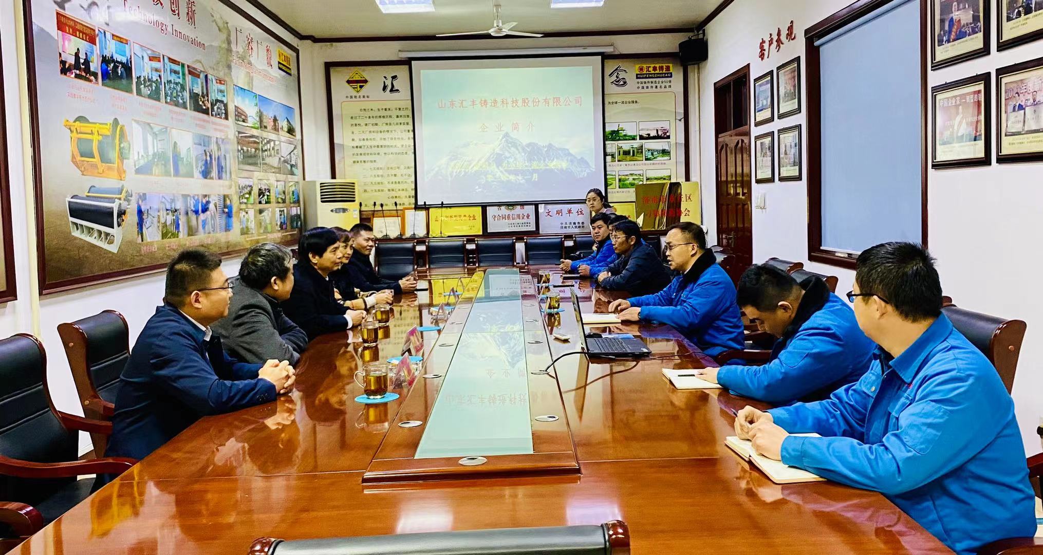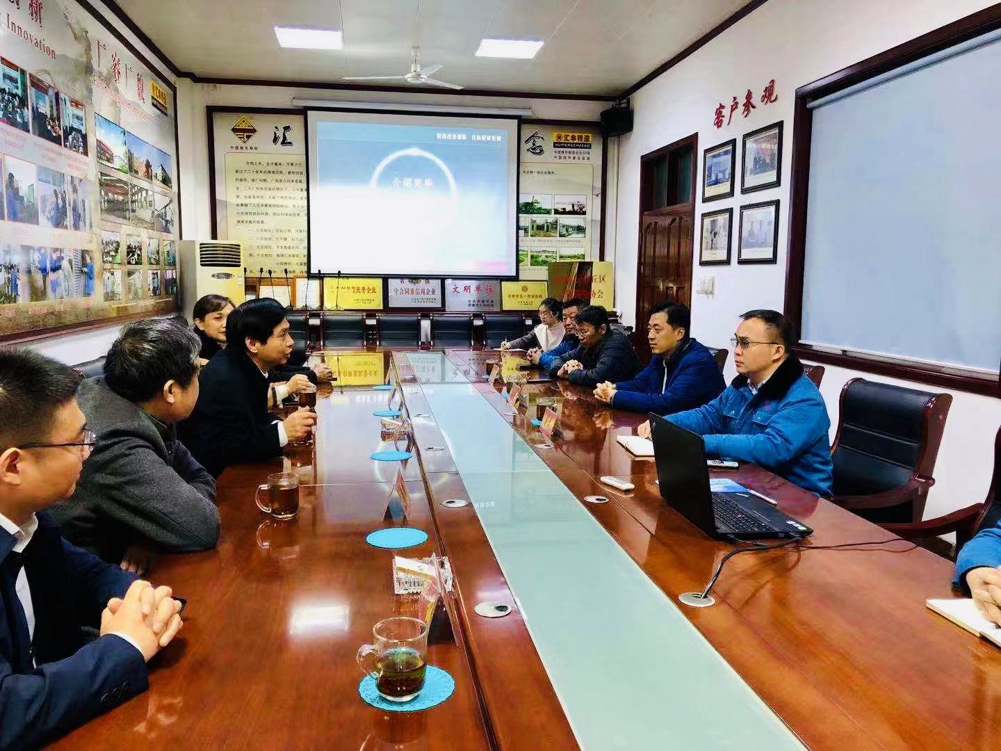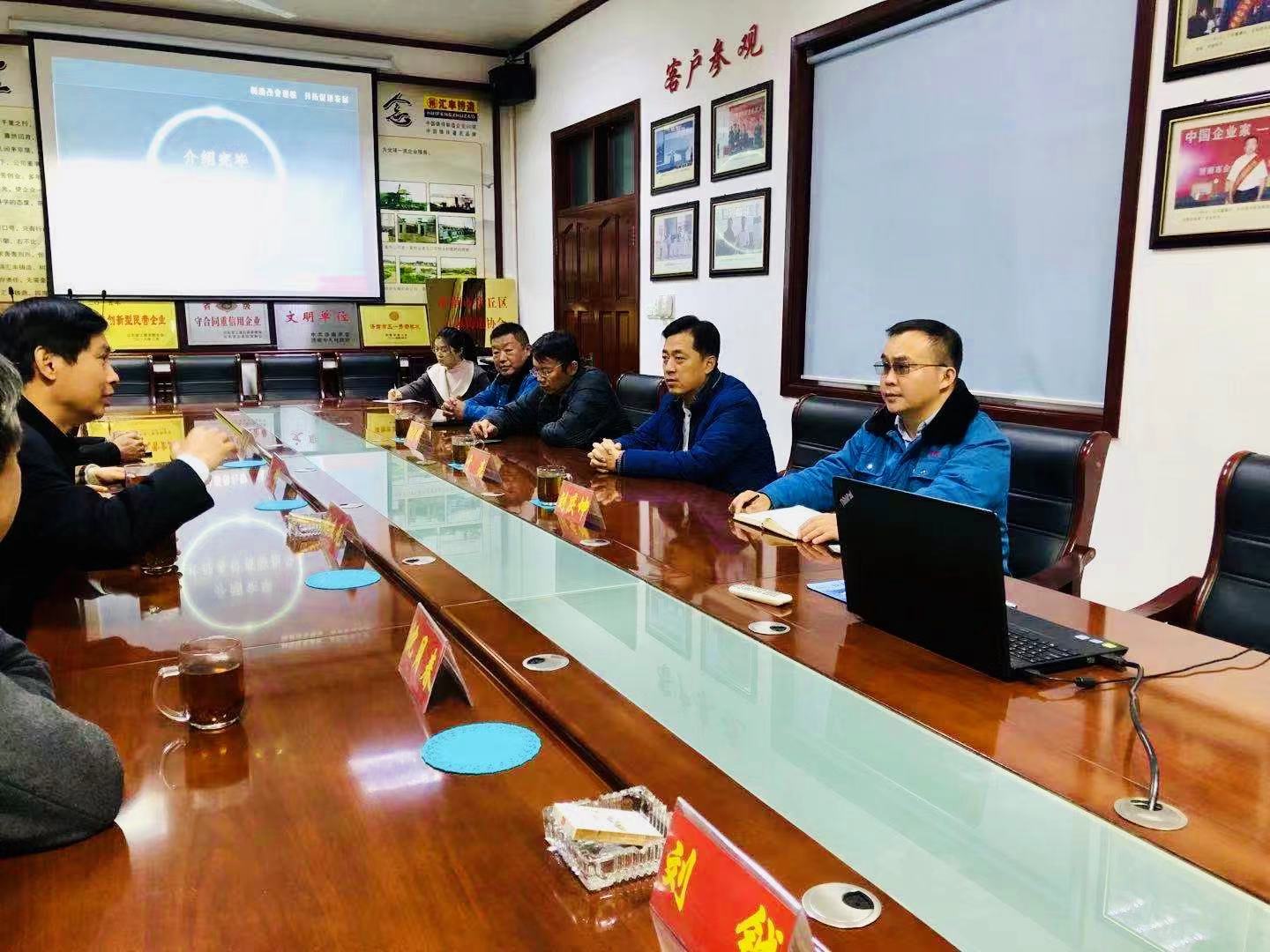 在公司会议室,区政协委员、总经理刘庆坤,详细的介绍了公司发展历程、技术创新、人才培育、企业文化、社会担当等情况,并结合行业发展,市场定位和公司十四五规划,做了具体汇报。
